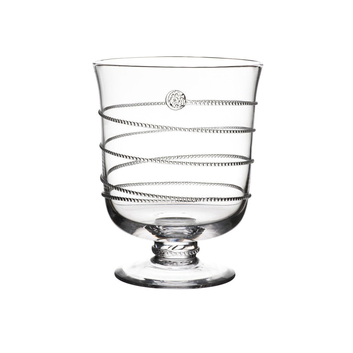 From the Juliska blown glass Amalia Collection - Let dancing candlelight set the scene for a romantic night with this hurricane, which can also be used as a vase for fresh floral arrangements. This Bohemian glass collection features an iconic spiral threaded design ascending from its base accented with the signature berry.
