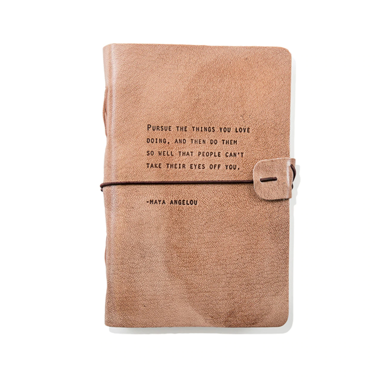These blush leather journals make the perfect gift. They can vary in color as they are artisan-made and hand dyed. Each journal has unlined paper inside.