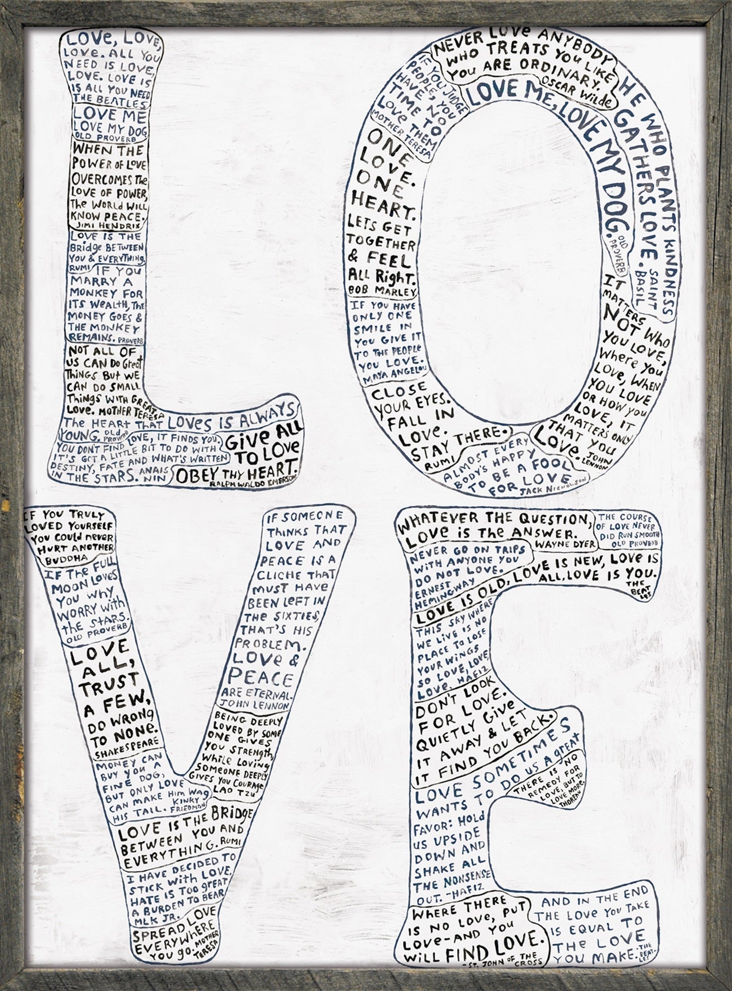 This unique art print features the word "LOVE" with many wonderful sayings printed inside!
